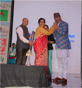 In 2022, Mr. Shashi Sharma Majgainya received recognition and reward from the Kathmandu Metropolitan City Office for his exceptional efforts in disaster risk reduction work on behalf of NFYN. Mr. Majgainya is leading the Community-based Disaster Management Project in Kathmandu. He was presented with the certificate by Deputy Mayor Mrs. Sunita Dangol and the Chief of the National Disaster Risk Reduction and Management Authority, Mr. Anil Pokhrel. Additionally, CEO of Kathmandu Metropolitan City, Mr. Basant Adhikari, and other designated officials were also present at the ceremony.