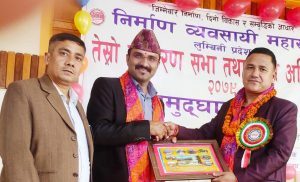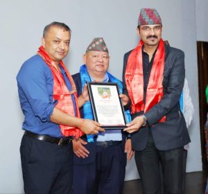 “Mr. Shashi Sharma Majgainya was honored by Mr. Balibhadra Rana, President of the Federation of Contractors Association, for his exceptional service as a legal advocate and moderator during the federation’s election process and annual program in 2023.”